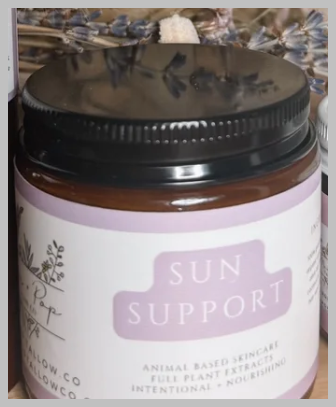 At Mom and Pop Tallow we value getting 15-30 minutes of direct sunlight on as much skin as possible first think in the AM. Then use Sun Support & reapply to nourish and support your skin as needed.